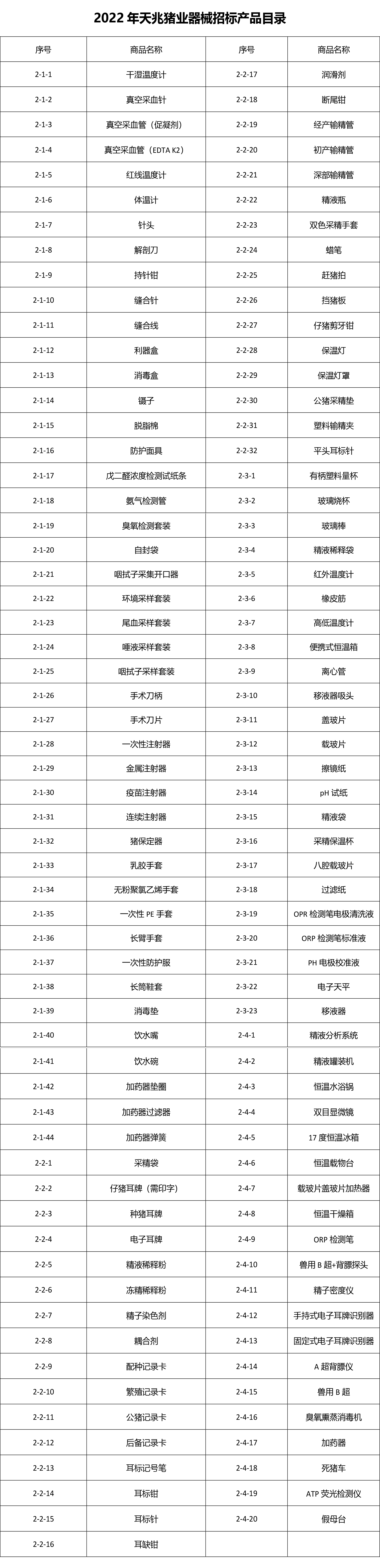 豬場內獸醫、生物安全、生產及育種相關,精液檢測實驗室用器械、耗材、試劑和儀器設備等。招標產品參見附件《2022年天兆豬業實器械招標產品目錄》,但不僅限于附表。