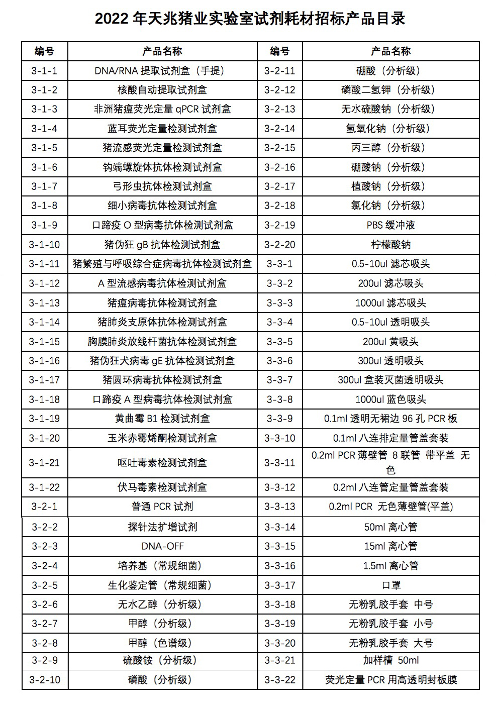 2022年天兆豬業(yè)試劑耗材招標采購
